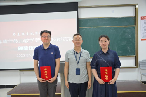 经过激烈角逐,最终教师孙碧晨和冯懿获比赛一等奖,覃德强、李衫衫、张雅妍、李博文四位教师获比赛二等奖。校长助理双海军,马克思主义学院院长张国容、直属党支部副书记傅小珮为获奖教师颁发荣誉证书。