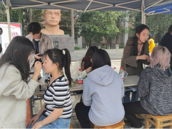 中午12:30,建筑与设计学院学生纷纷带着美妆、美甲工具到达现场,海绵搓、光疗灯、甲油、粉底液等琳琅满目的专业工具摆满了桌面。同学们利用自己的专业知识向全校女职工提供了“美妆、美甲”变美服务。美妆、美甲、拍照打卡,活动现场异常火爆。
