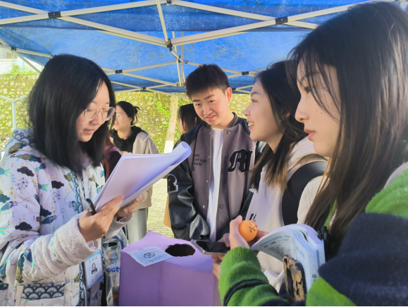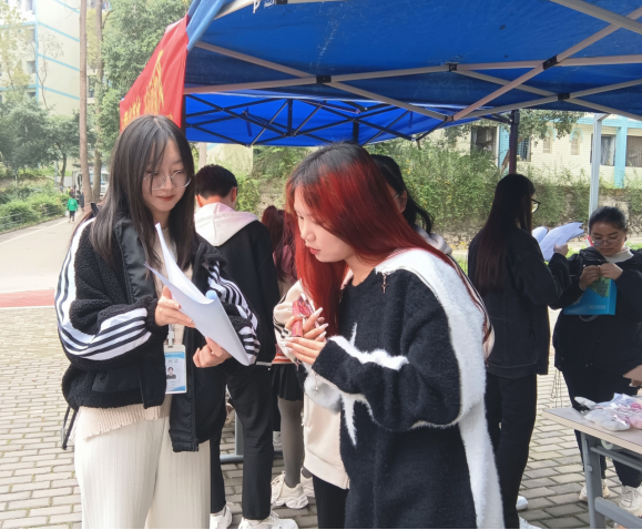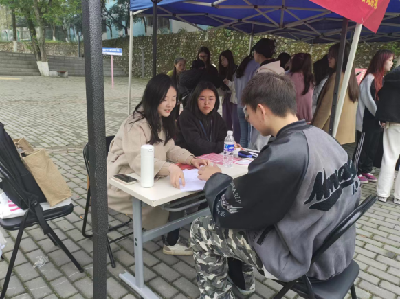 活动主要通过趣味问答和发放法律知识宣传单的方式向同学们宣传法律知识。在现场,两位老师对宣传资料的法律知识进行讲解,并对同学们提出的法律问题进行详细解答。