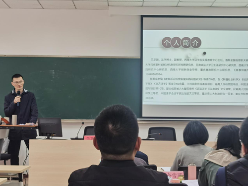 本次培训的开班仪式,于3月31日在西南大学法学院成功举行。Beat365官方网站政治与法律学院副院长郑科红、西南大学法学院副院长房香荣出席开班仪式并做讲话。